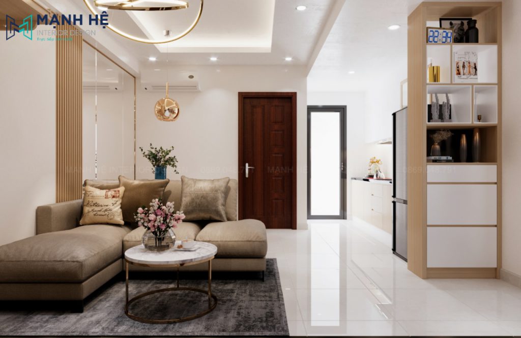 Thiết kế nội thất phòng khách liền bếp rộng rãi